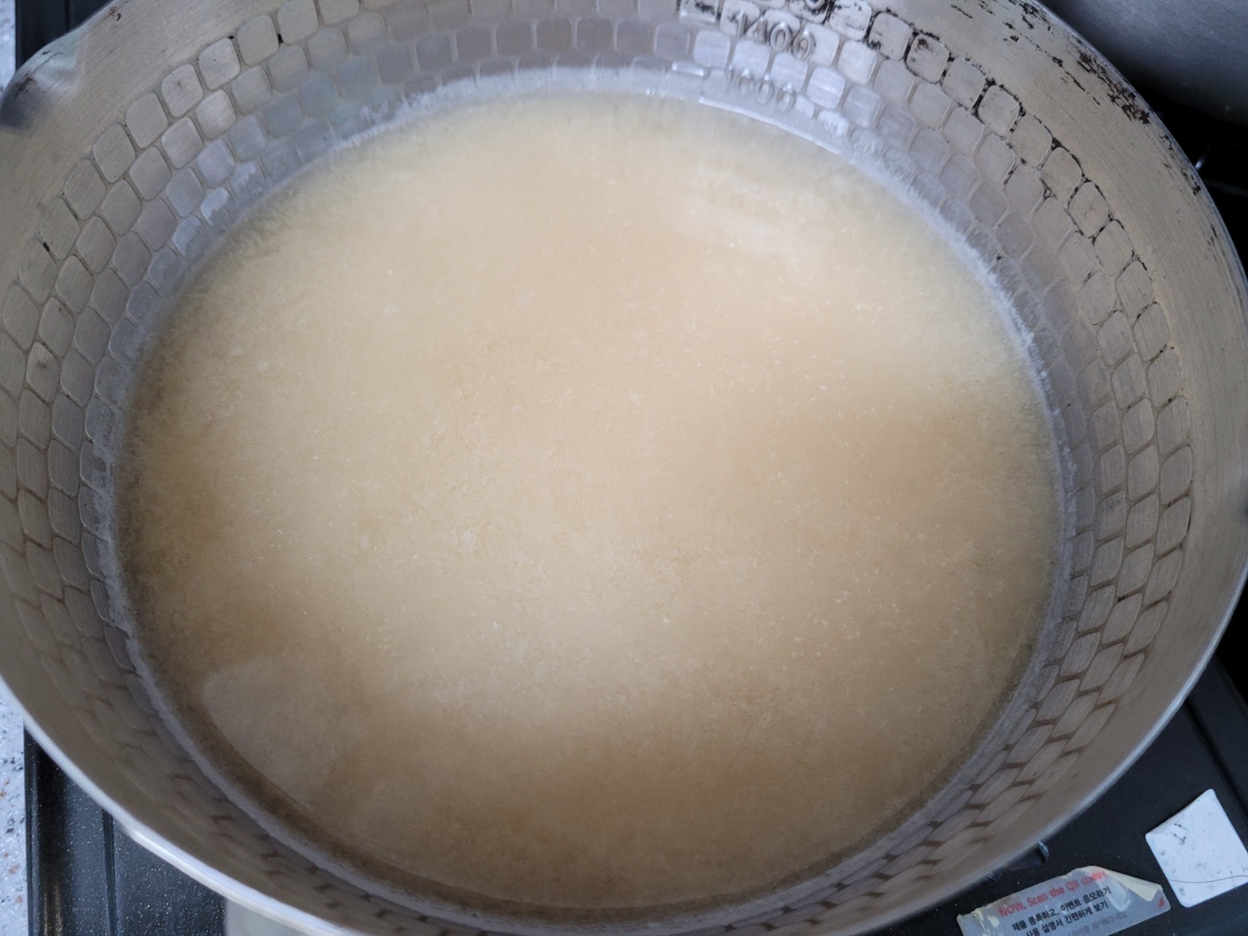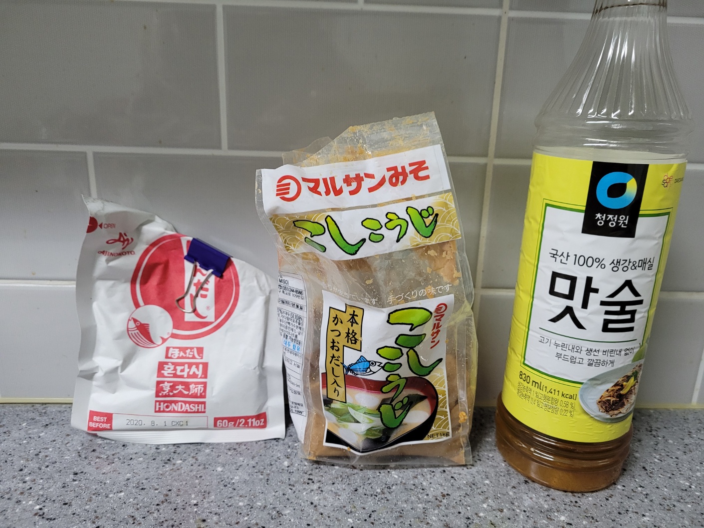 다시마는 건져내준 후, 미소된장에 체에 걸러 풀어주세요. 그리고 분량의 혼다시와 미림을 넣어주고 팔팔 끓여주세요.