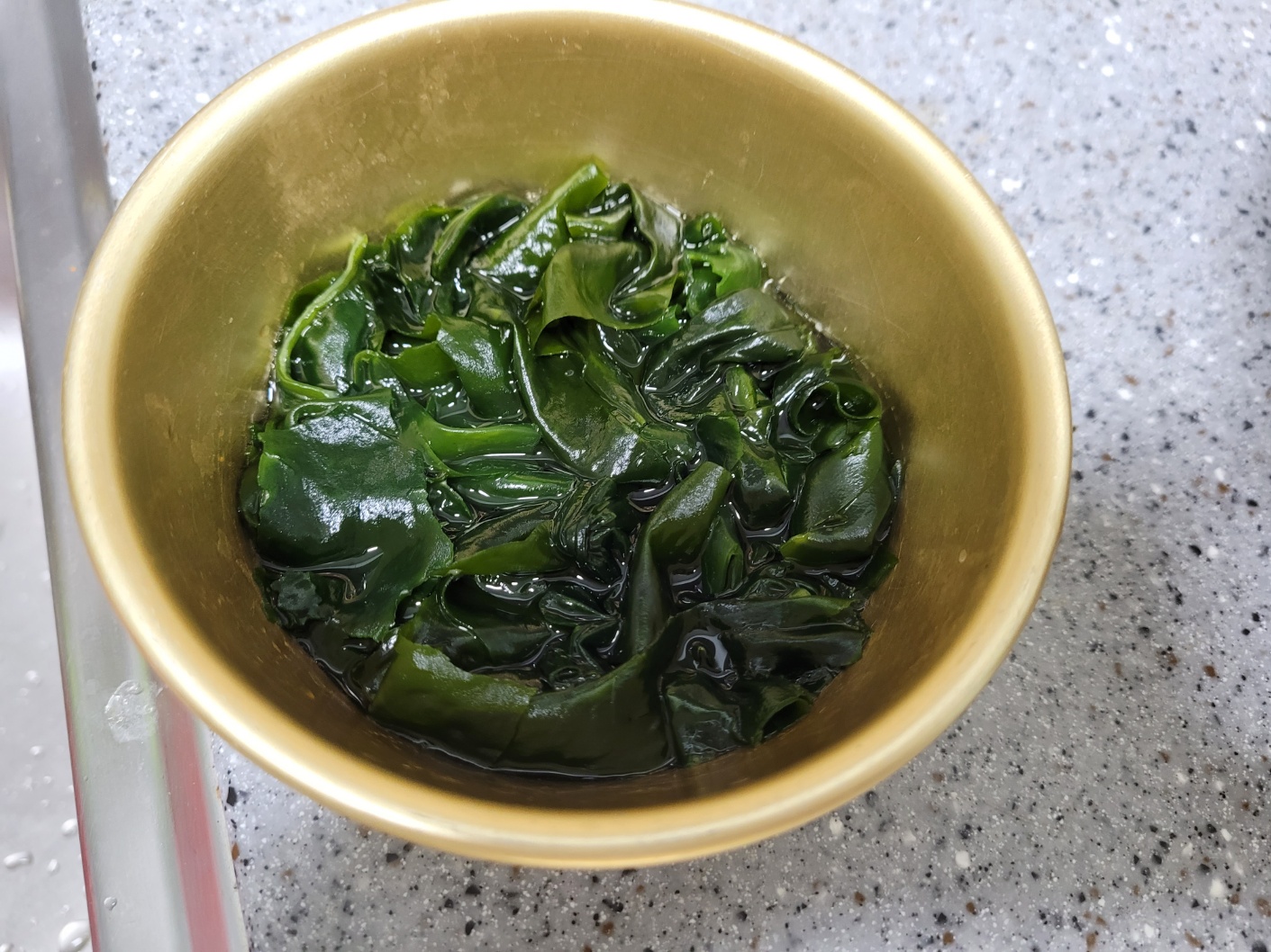 우선 건미역을 물에 담가 불려준 후, 한입 크기로 잘라주세요.