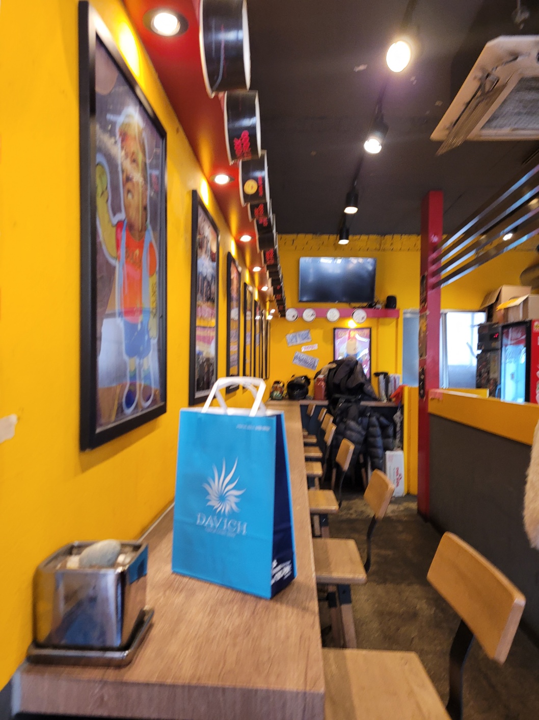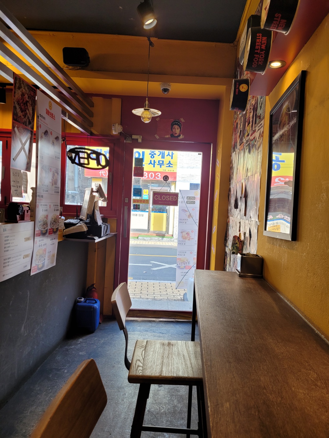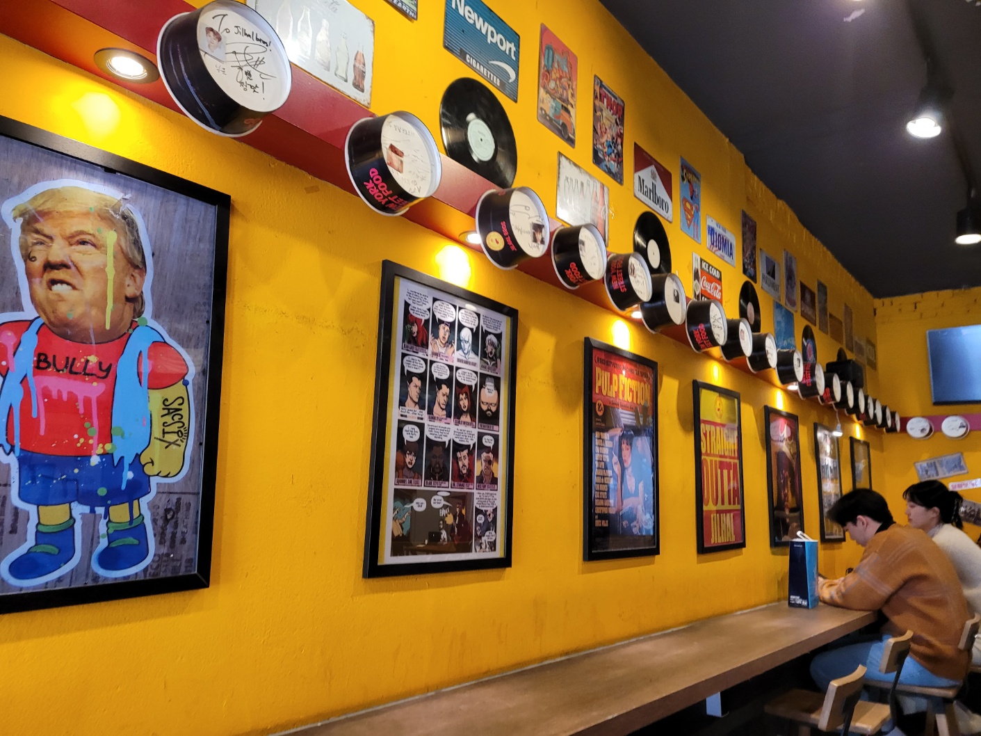 질할 브로스 송파점은 뉴욕의 대표 길거리 음식점 같은 느낌으로 매장은 바테이블 8개 좌석 정도 있는 아담한 가게였어요. 위의 접시에는 이 가게를 방문한 셀럽? 들의 사인이 있어요.