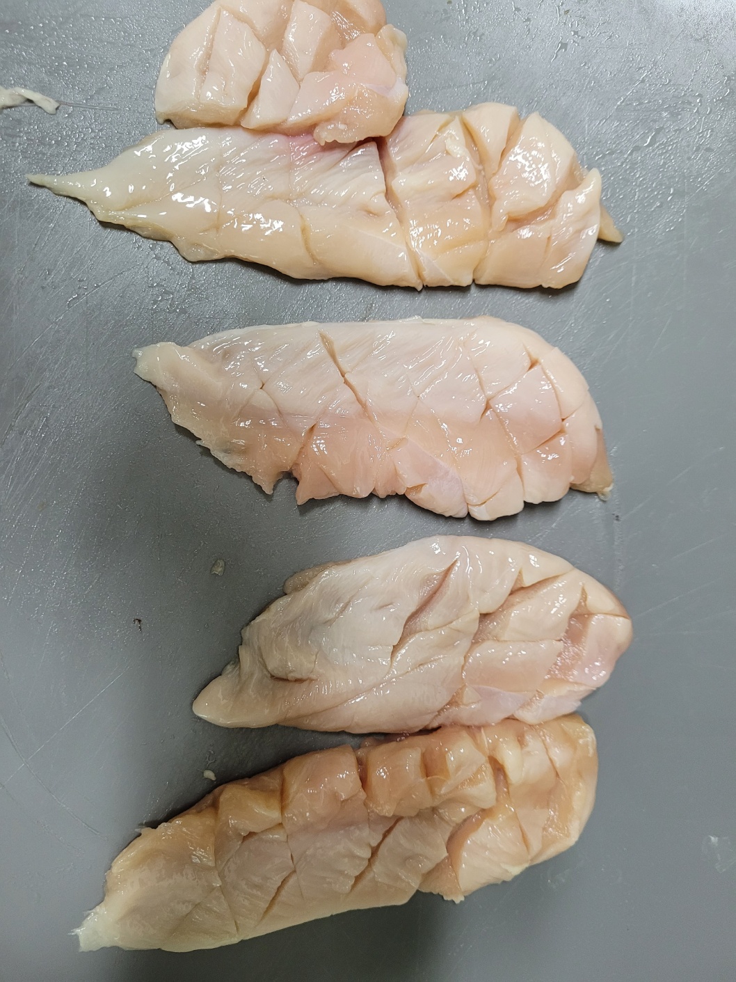 닭가슴살에 칼집을 내주세요.