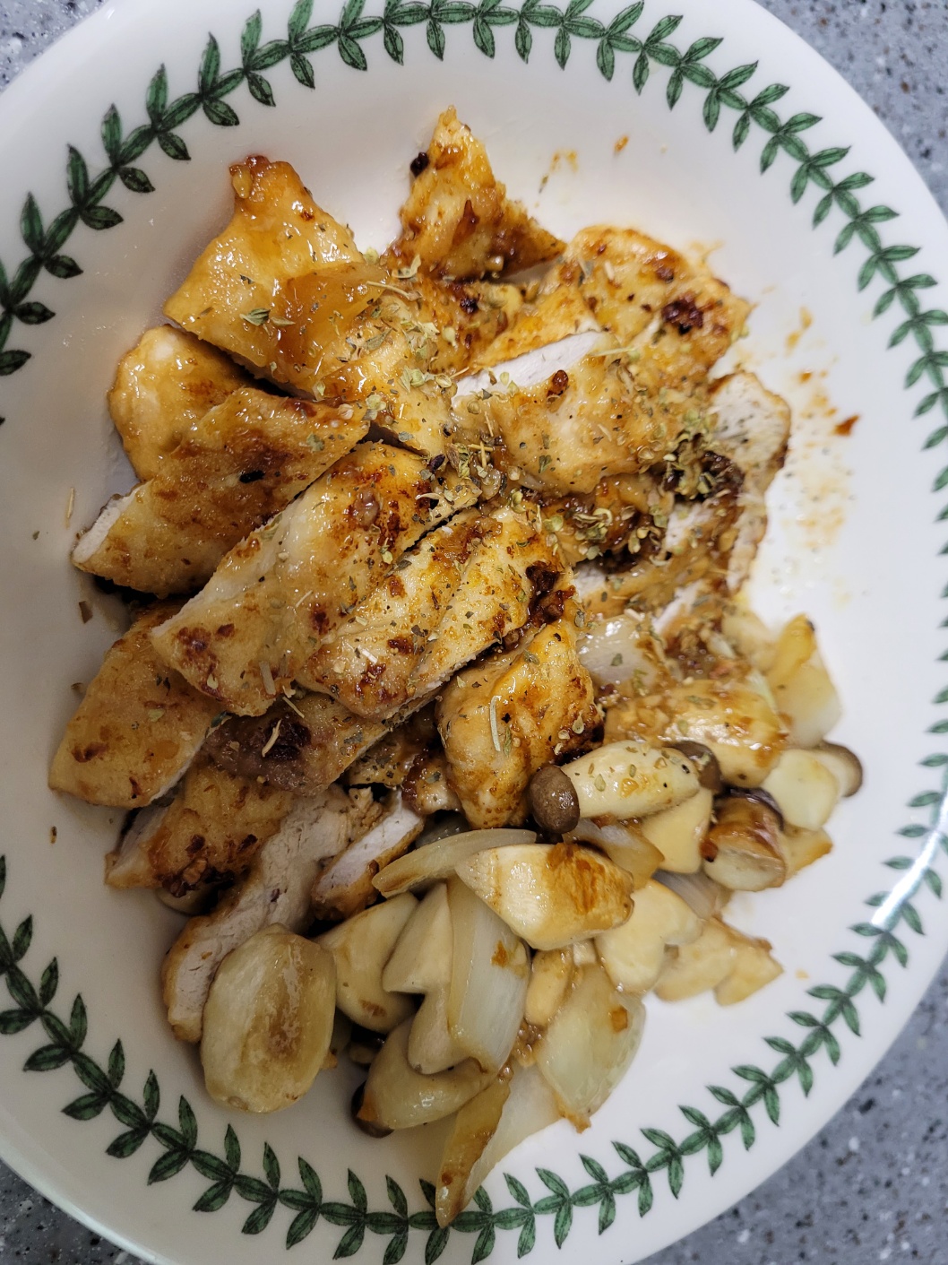 그릇에 담으면 고소한 버터와 짭조름한 간장, 알싸한 마늘의 풍미가 가득한 단백질 폭탄 요리 ‘닭가슴살 간장구이’ 완성입니다.(저는 마지막에 허브믹스와 오레가노를 살짝 뿌려주었어요)