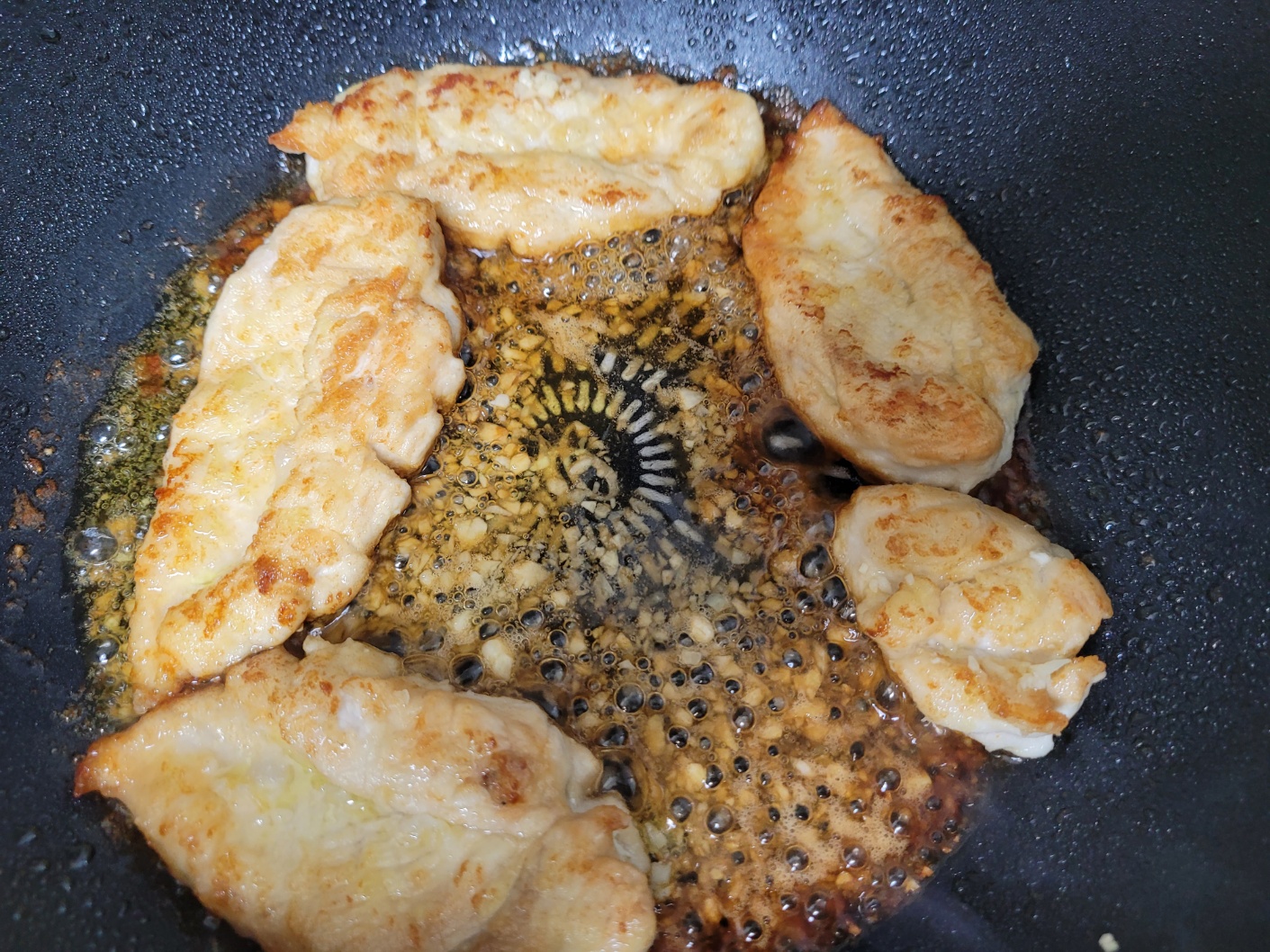 걸죽해지는 소스를 닭가슴살에 잘 끼얹으며 익혀주세요.