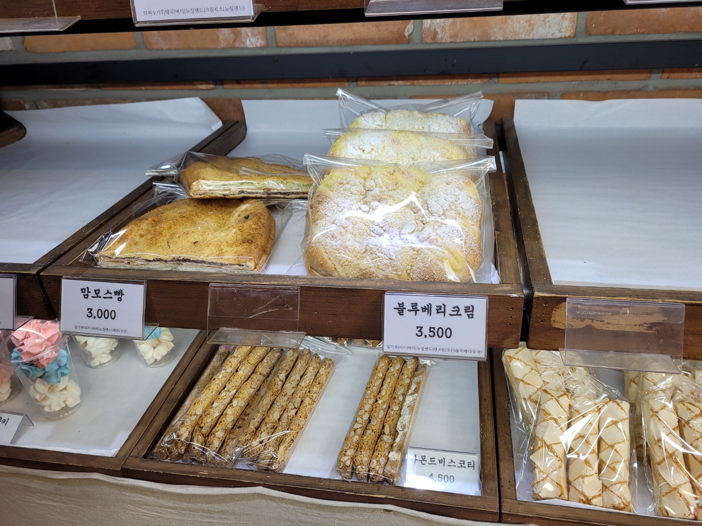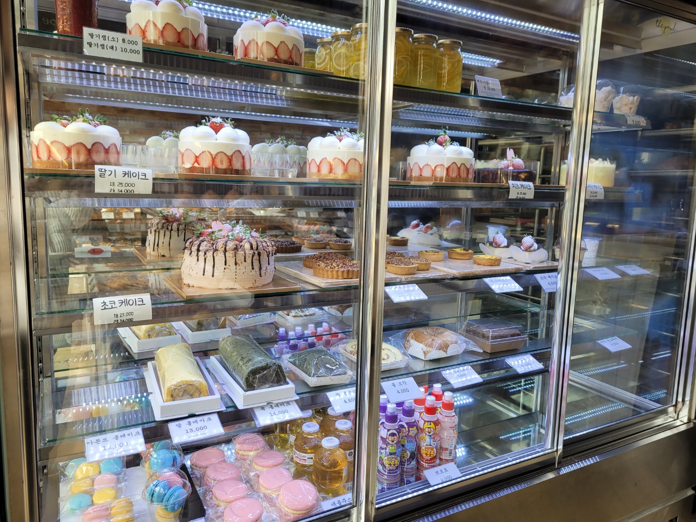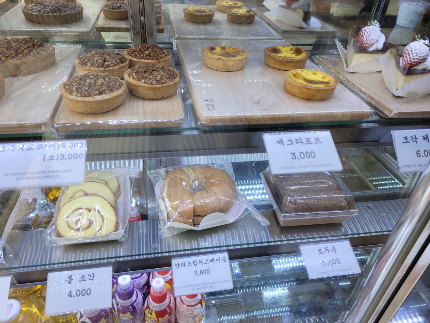 케익, 롤케익, 타르트, 티라미수, 까눌레, 마들렌 등 아담하지만 빵 종류가 많아서 좋은거 같아요.