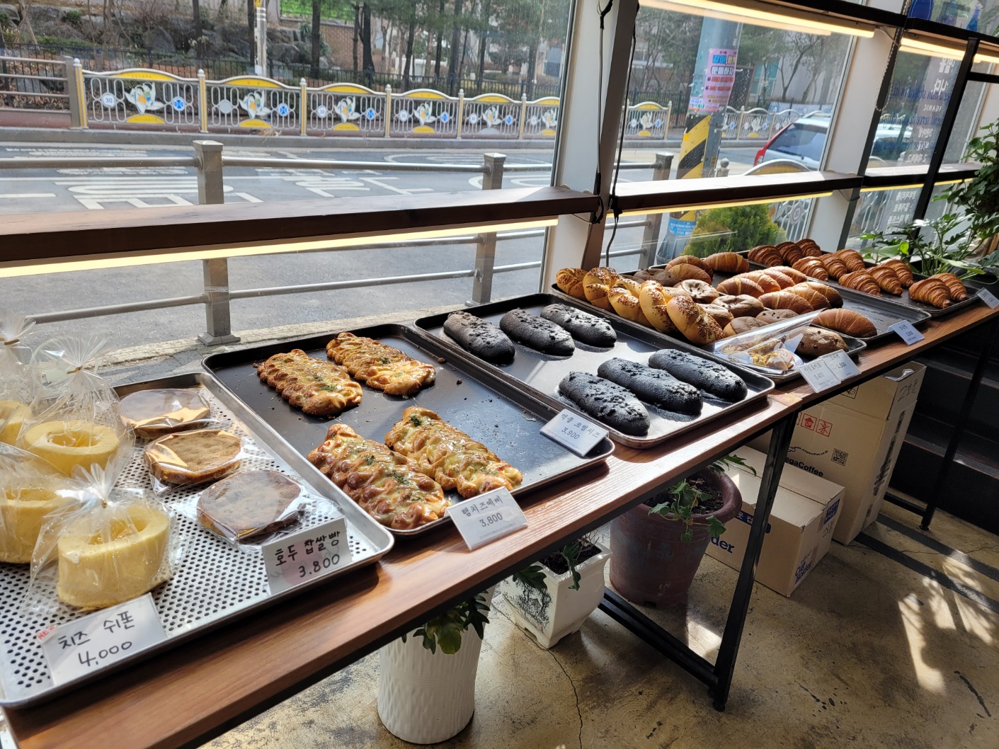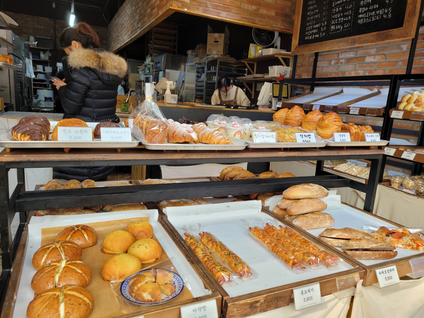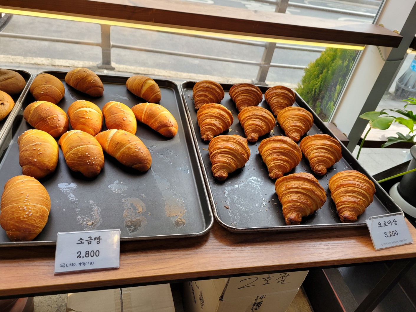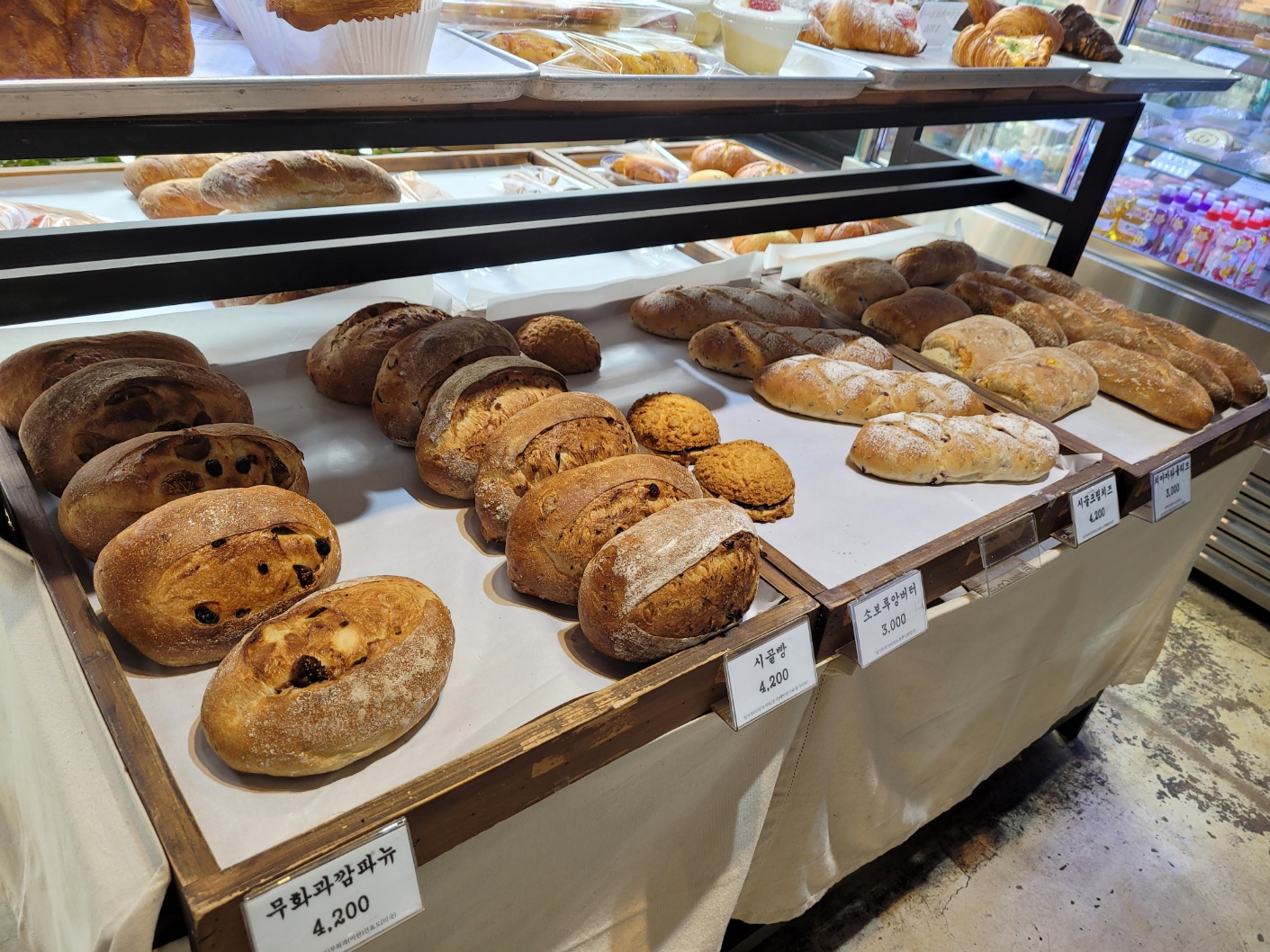 1층 베이커리는 공간이 아담한데 빵 종류는 꽤 다양했어요.