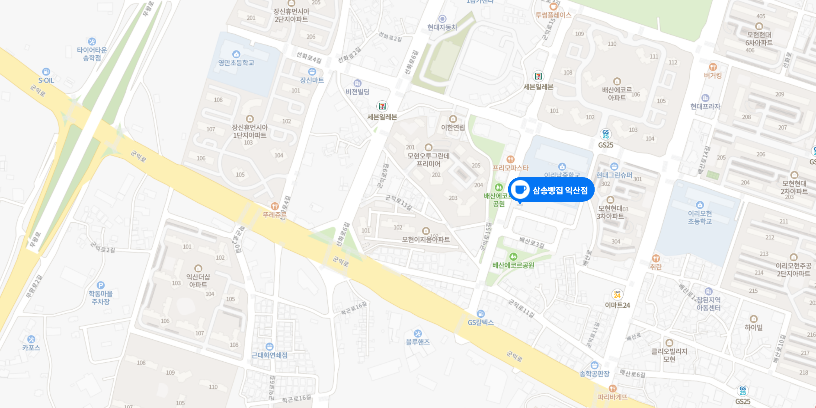 주소: 전북 익산시 배산로3길 63-42 1층 삼송빵집 익산점