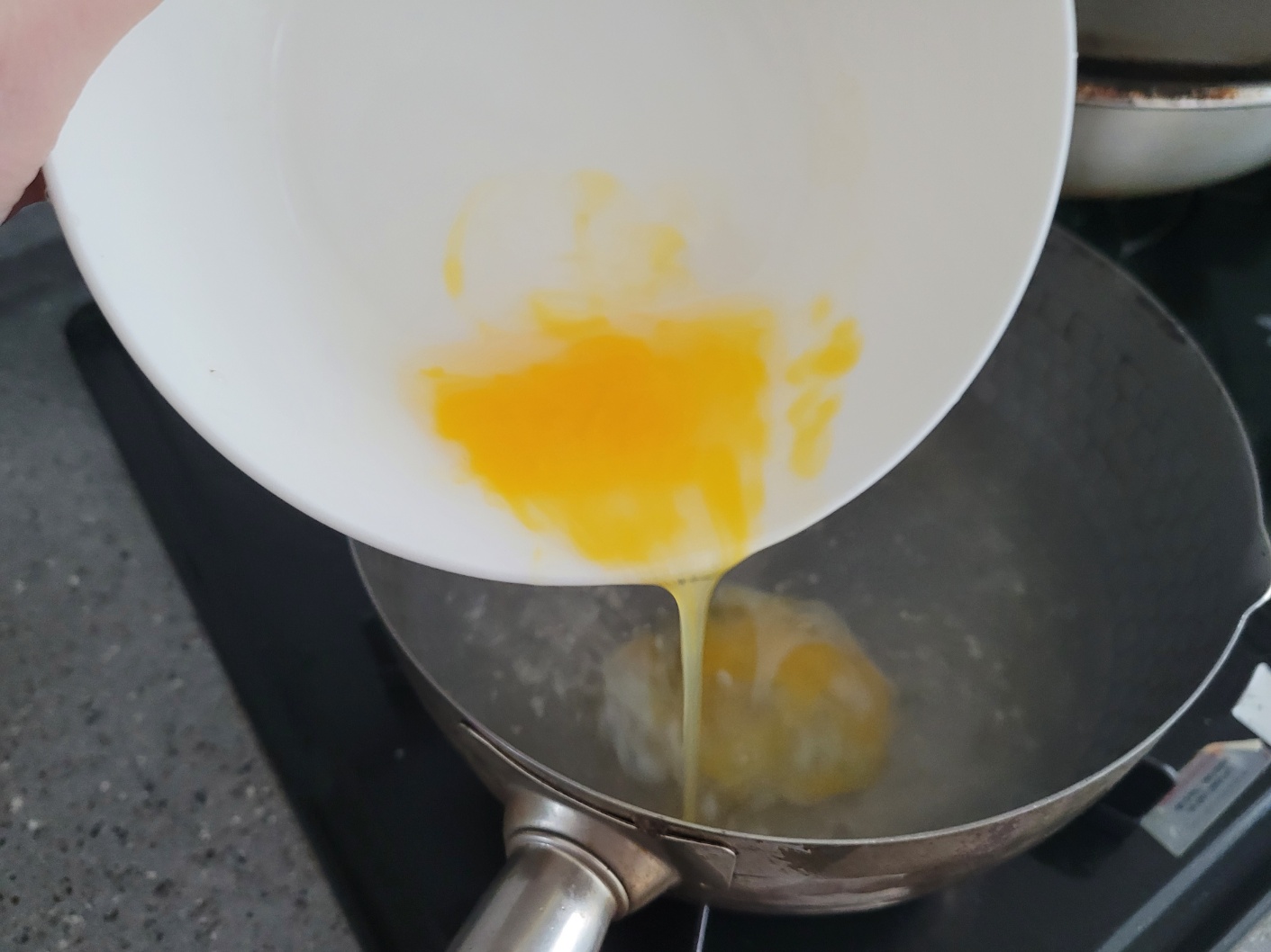 물이 끓기 시작하면 끓어 오르는 쪽으로 계란을 부어주고, 불을 꺼줍니다.