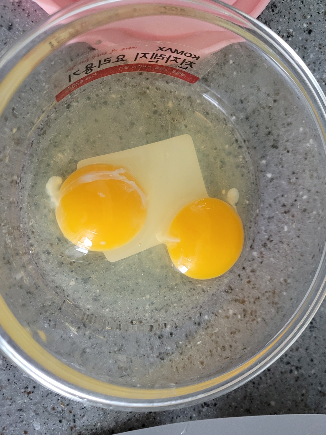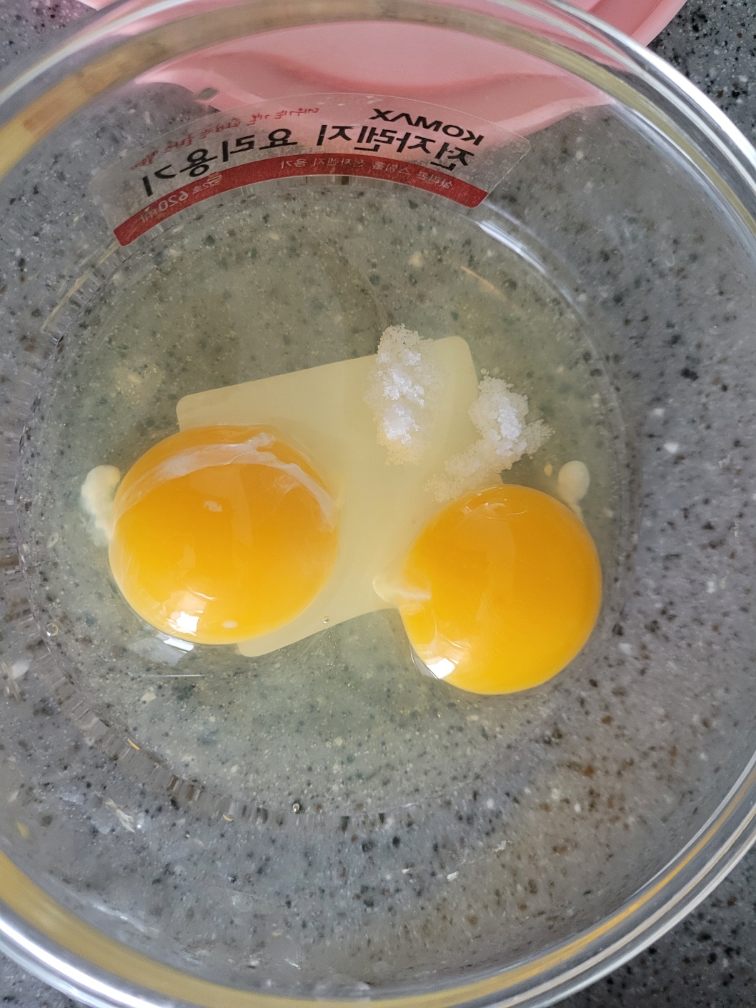 먼저 전자레인지용 그릇에 달걀 2개, 소금을 넣고 잘 풀어주세요.